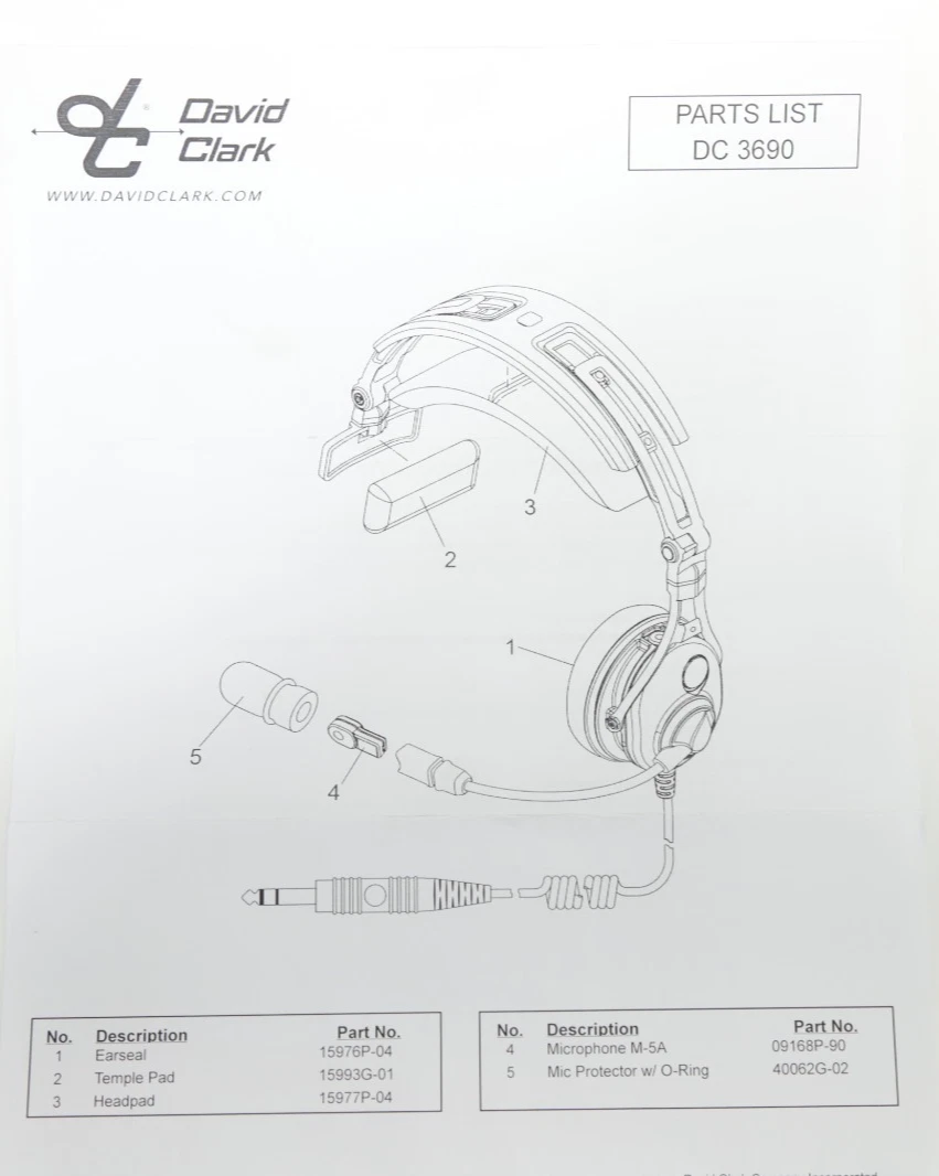 David Clark Part No: 43104G-02