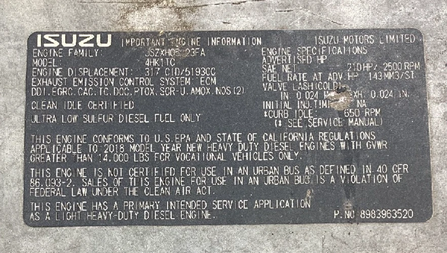 Isuzu Model No: 4HK1TC